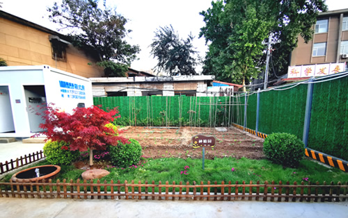 中央商務(wù)區(qū)正太廣場(chǎng)項(xiàng)目部,根據(jù)現(xiàn)場(chǎng)實(shí)際情況及廣場(chǎng)圖紙,因地制宜,利用原地道橋位置進(jìn)行簡(jiǎn)約化設(shè)計(jì),占地東西長(zhǎng)40米,南北寬20米。麻雀雖小五臟俱全,項(xiàng)目布局充分利用移動(dòng)板房外立面做文化設(shè)計(jì),用作公司簡(jiǎn)介宣傳墻、食堂文化宣傳墻及旗桿背景墻。項(xiàng)目部除辦公區(qū)外,還設(shè)置了餐廳、獨(dú)立衛(wèi)生間、淋浴間等生活設(shè)施以及微景觀種植園等休閑場(chǎng)所,整個(gè)項(xiàng)目部簡(jiǎn)約而不簡(jiǎn)單,注重以人為本,盡可能提高項(xiàng)目部人員工作、生活水平,激發(fā)了干部職工干事創(chuàng)業(yè)的激情,為推進(jìn)項(xiàng)目建設(shè)提供了有力支撐。